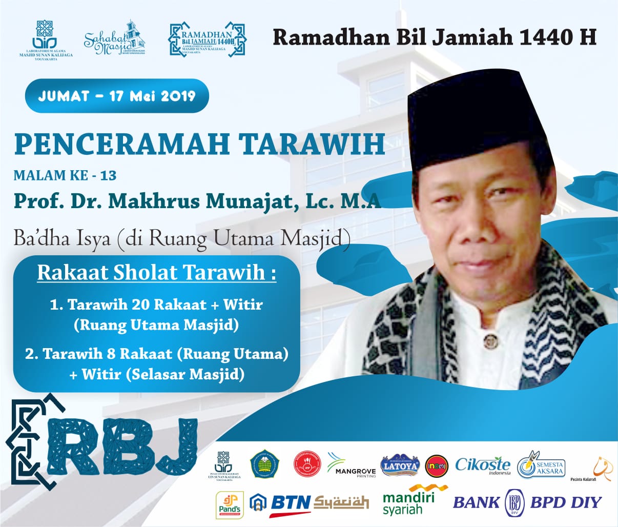 Penceramah Tarawih Malam Ke-10 Prof. Dr. Makhrus Munajat, Lc.M.A Ramadhan Bil Jamaah 1440 H