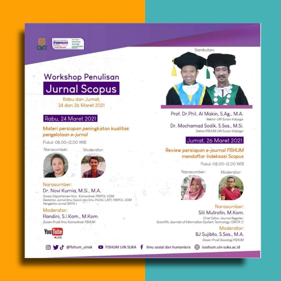 | Deskripsi | : | Mari ikuti Workshop Penulisan Jurnal Scopus Rabu, 24 Maret 2021 Pukul: 08.00-12.00 WIB Tema: Materi Persiapan peningkatan kualitas pengelolaan e-jurnal sebagai bekal untuk mendaftar indeksasi |