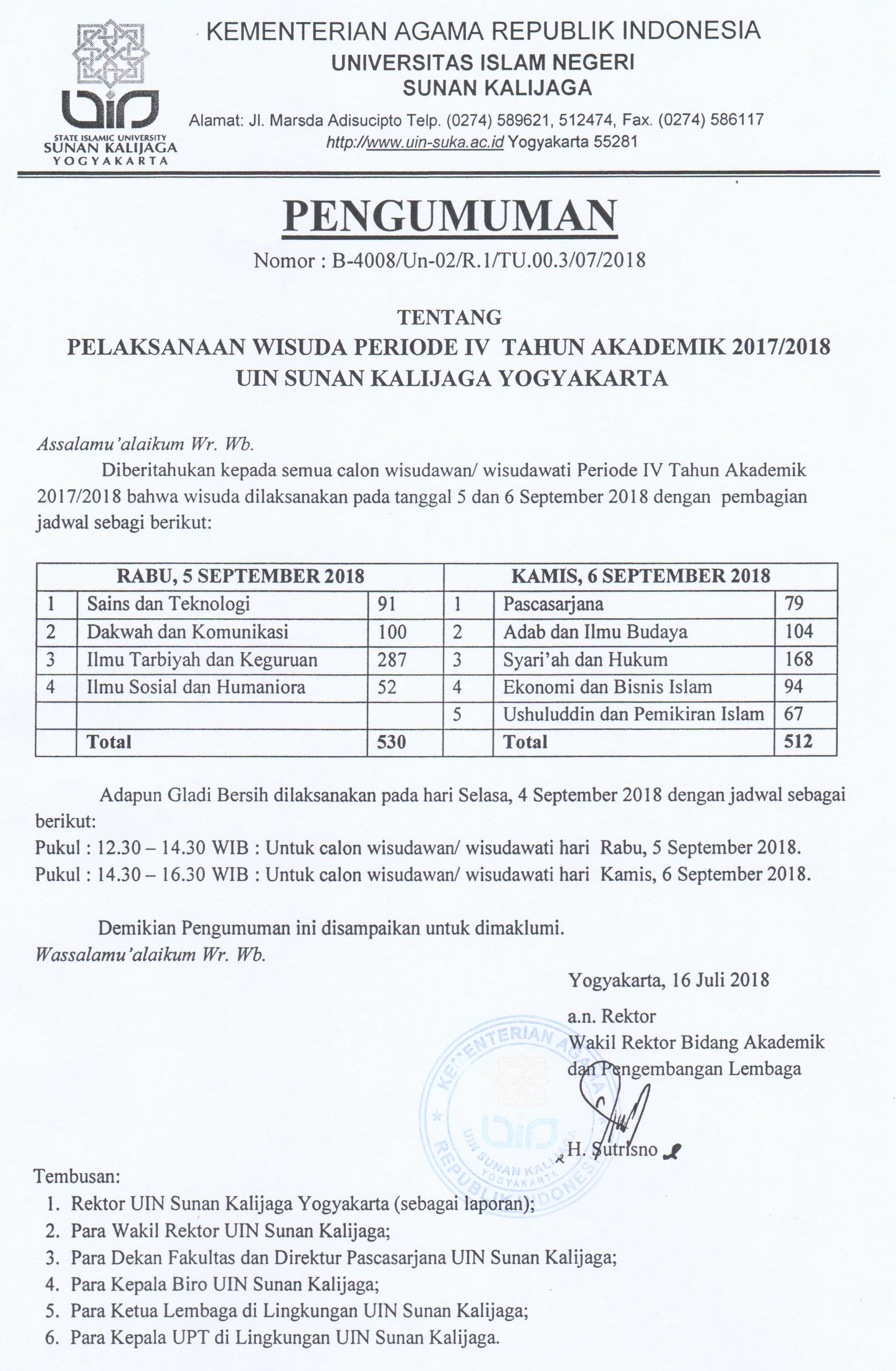 Jadwal Pelaksanaan Wisuda Periode V T.A.2017/2018 Rabu, 18 Juli 2018 09:00:50 WIB Dilihat : 4646 Kali Unduh