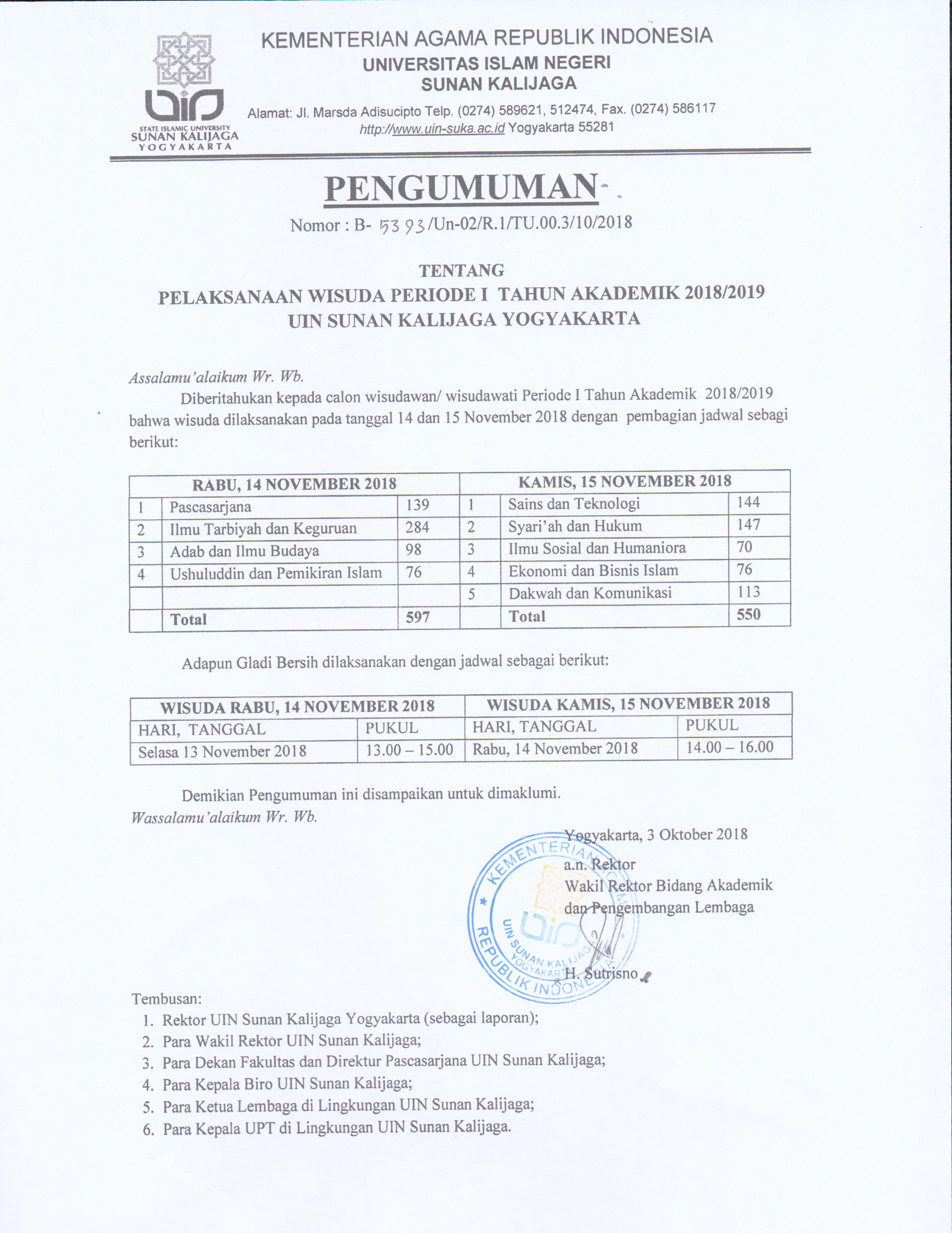 Pelaksanaan Wisuda Program S-1, S-2 Dan S-3 Periode I T.A. 2018/2019 Rabu, 10 Oktober 2018 14:39:48 WIB Dilihat : 5499 Kali Unduh