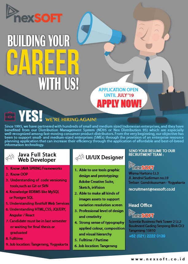 Loker Web Developer and Designer: nexSOFT Kamis, 1 November 2018 15:51:27 WIB Dilihat : 1731 Kali Unduh