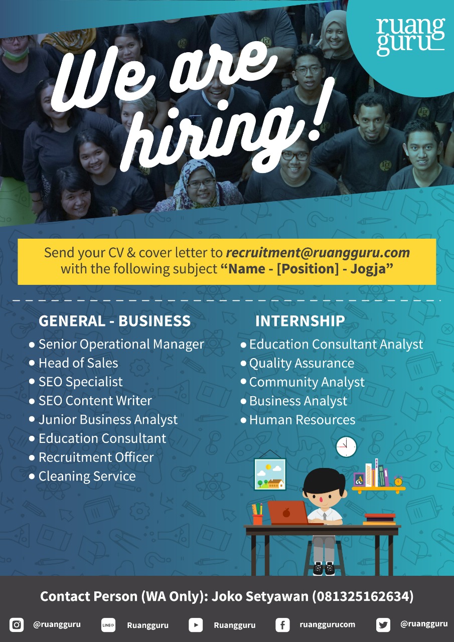 Loker Internship and General-Business: ruangguru Kamis, 1 November 2018 15:58:42 WIB Dilihat : 2842 Kali Unduh