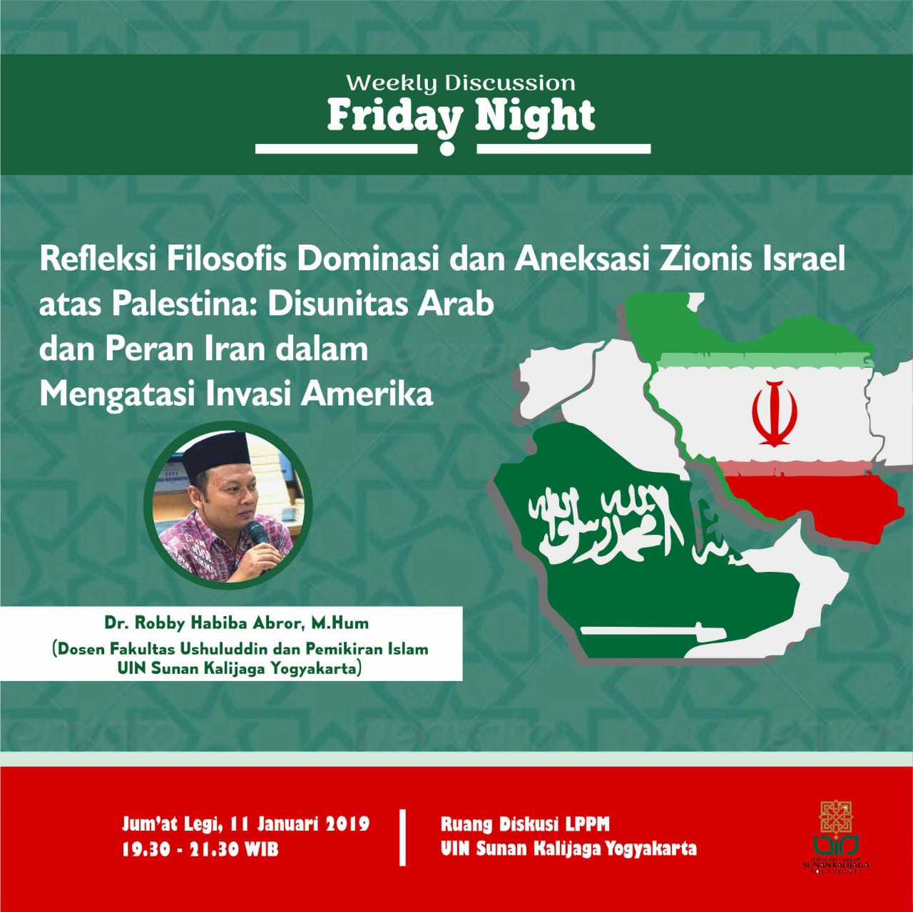 Diskusi Rutin Jumat Malam" Refleksi Filosofis Dominasi dan Aneksasi Zionis Israel atas Palestina" Kamis, 10 Januari 2019 13:24:43 WIB Dilihat : 1765 Kali Unduh