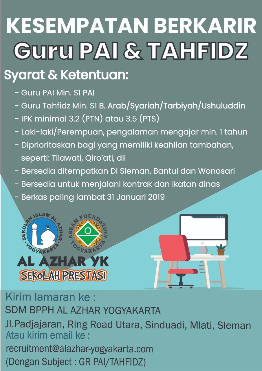 Loker Guru PAI & Tahfidz Al-Azhar Yogyakarta Rabu, 23 Januari 2019 15:38:25 WIB Dilihat : 5159 Kali Unduh