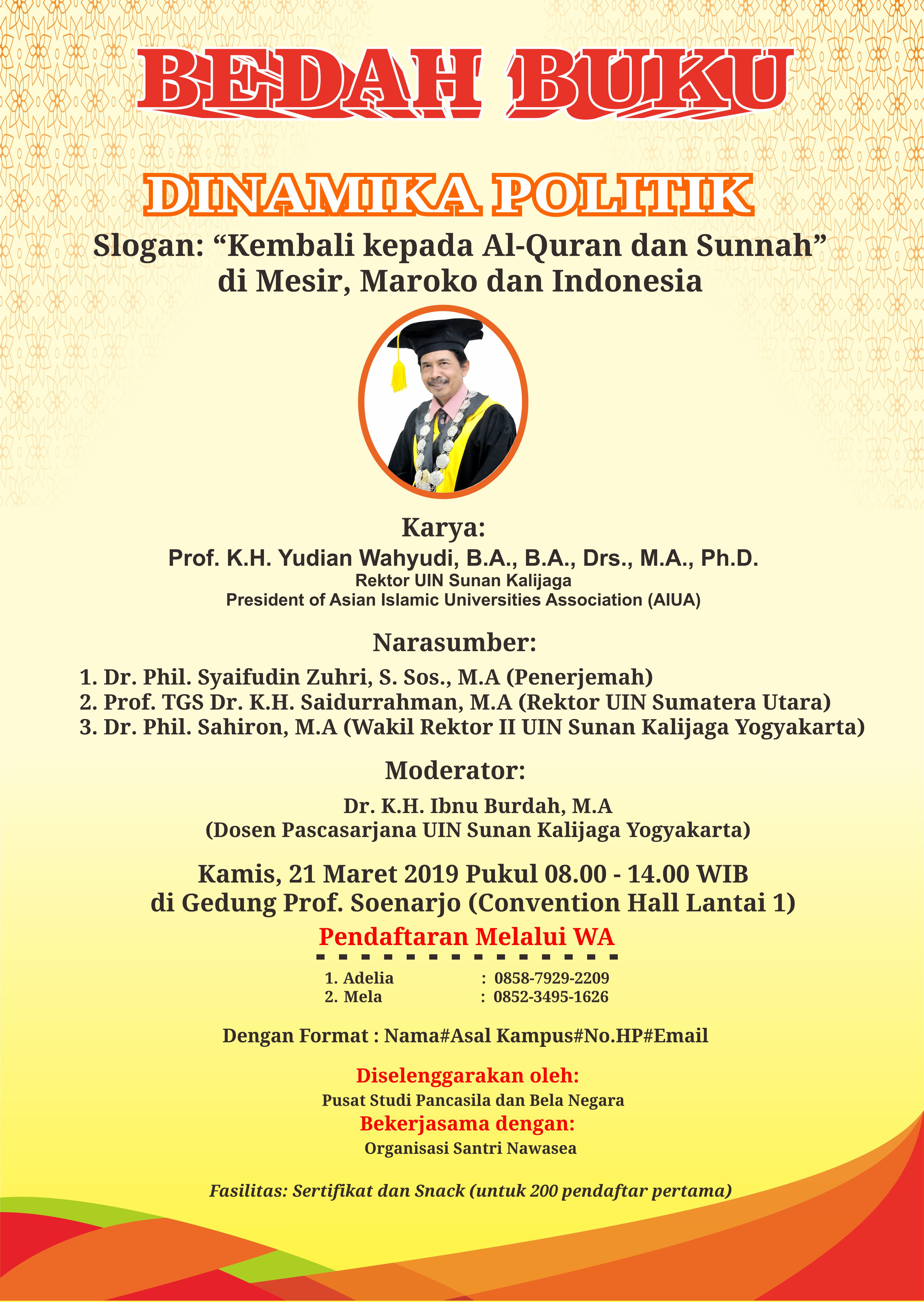 Bedah Buku Dinamika Politik Karya Prof. Drs. K.H. Yudian Wahyudi, M.A Senin, 18 Maret 2019 11:46:40 WIB Dilihat : 2623 Kali Unduh