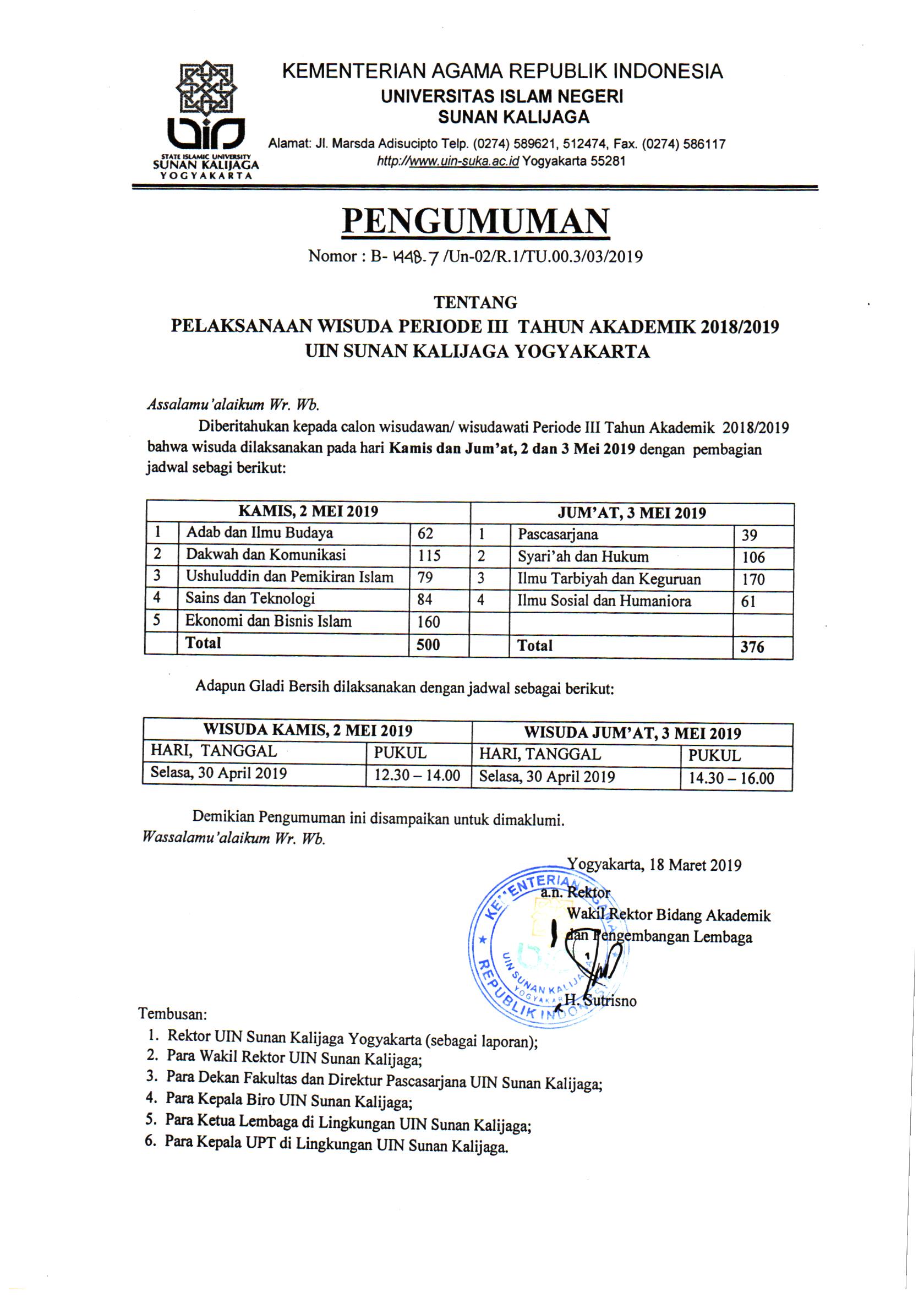 Pelaksanaan Wisuda Program S-1,S-2 Dan S-3 Periode III T.A. 2018-2019 Selasa, 26 Maret 2019 11:41:49 WIB Dilihat : 4529 Kali Unduh