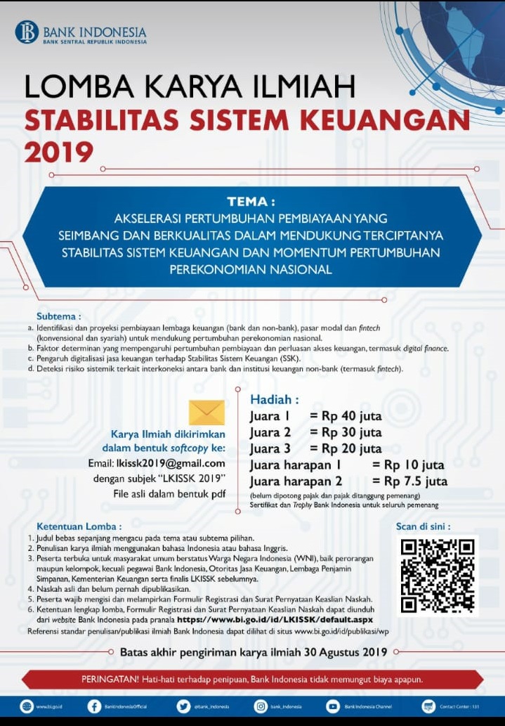 Lomba Karya Ilmiah Stabilitas Sistem Keuangan 2019 Kamis, 25 April 2019 08:44:59 WIB Dilihat : 2645 Kali Unduh