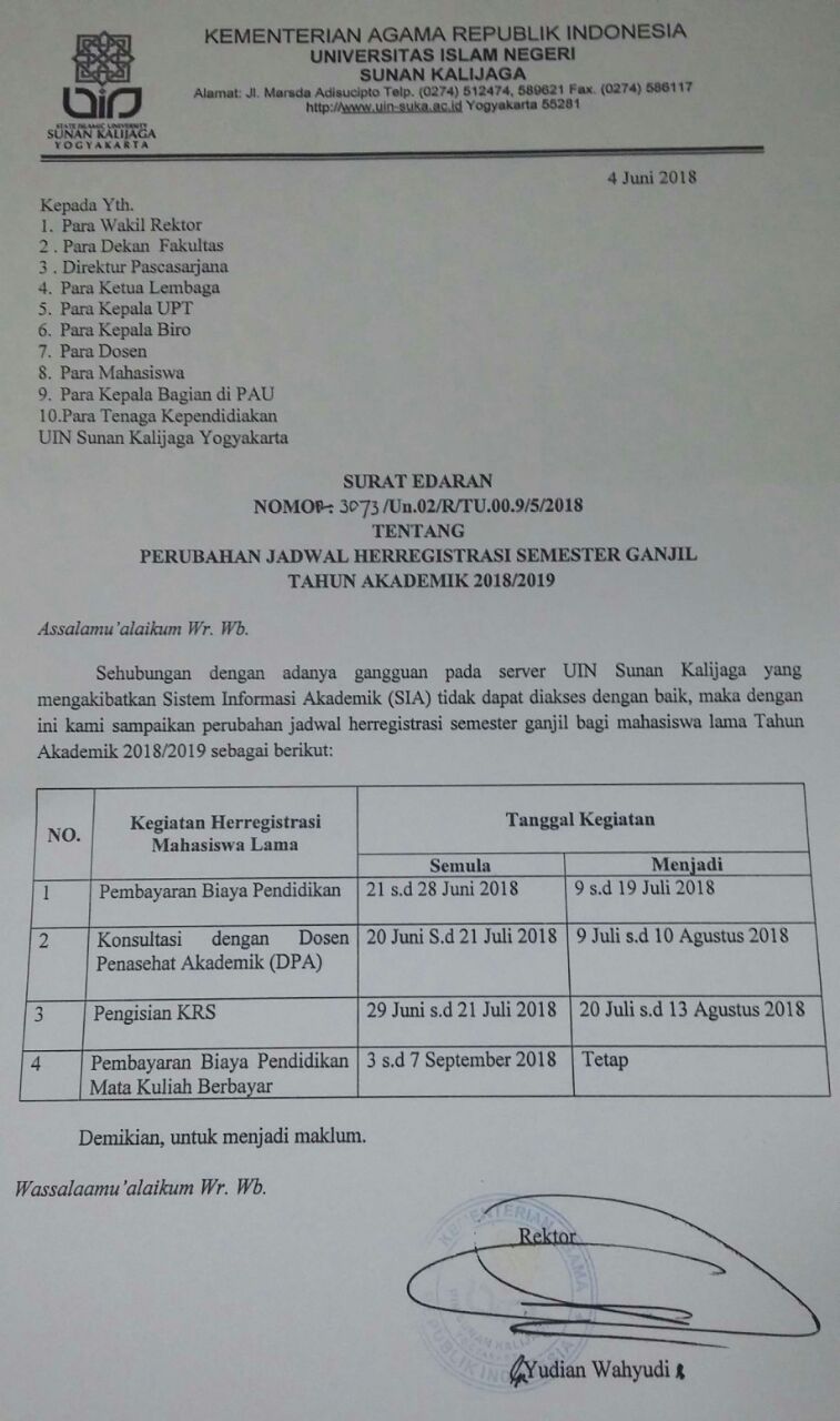 Perubahan Jadwal Herregistrasi Semester Ganjil T.A. 2018/2019 Senin, 4 Juni 2018 08:45:15 WIB Dilihat : 5869 Kali Unduh
