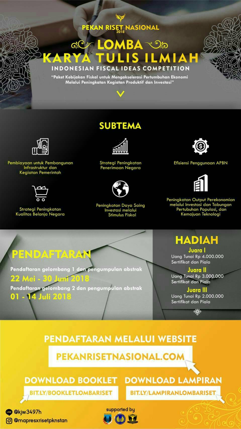Pekan Riset Nasional Lomba Karya Tulis Ilmiah Kamis, 21 Juni 2018 16:02:53 WIB Dilihat : 4451 Kali Unduh