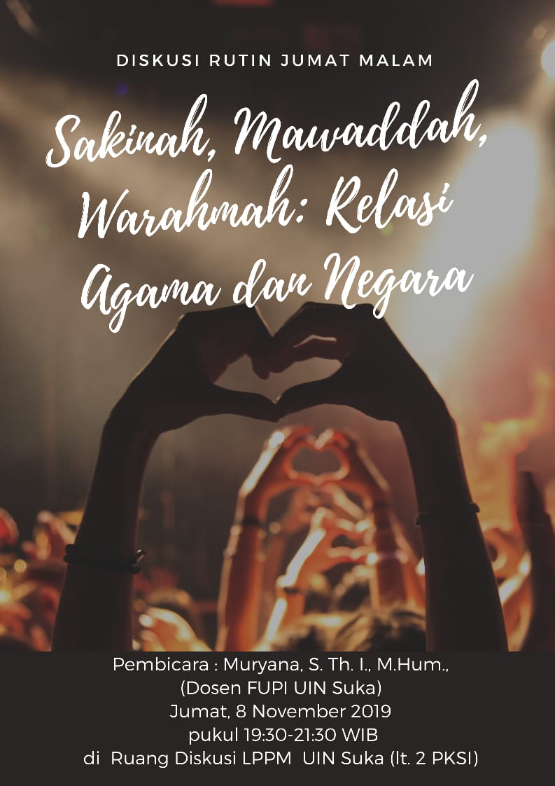 Diskusi Jumat Malam " Sakinah, Mawadah, Warahmah:Relasi Agama dan Negara" Jumat, 8 November 2019 14:21:37 WIB Dilihat : 2944 Kali Unduh