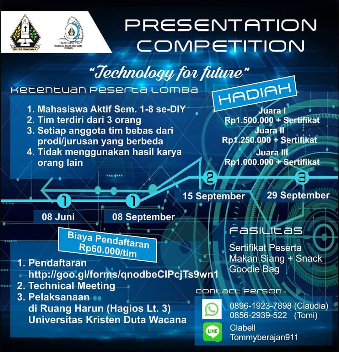 Presentation Competition Technology for Future Jumat, 29 Juni 2018 15:01:00 WIB Dilihat : 3271 Kali Unduh