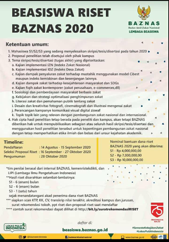 Beasiswa Riset Baznas 2020