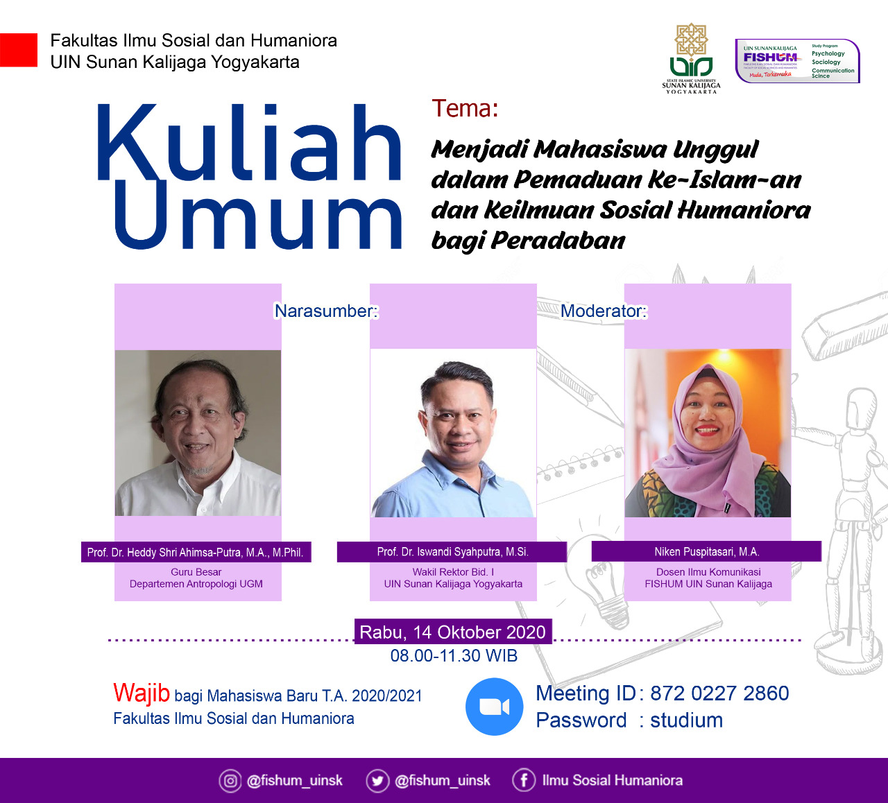 Kuliah Umum "Menjadi Mahasiswa Unggul Dalam Pemaduan Ke-Islam-an dan Keilmuan Sosial Humaniora bagi Peradaban" Senin, 12 Oktober 2020 11:27:07 WIB Dilihat : 2149 Kali Unduh
